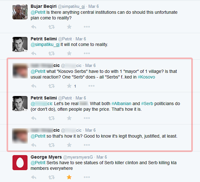 „Будимо реални“, одговорио је Сељими „шта, на обе стране албанској или српској, политичари ураде (или не ураде) најчешће народ за то плати. То је просто тако“ констатовао је он. „Значи, тако то иде“ наставио је (највероватније) Србин. Добро је знати да је то легитимно, макар је оправдано“ иронично је завршио Сељимијев саговорник. Петрит Сељими није сматрао да има потребе даље објашњавати ситуацију. Нема везе што је све јавно јер – то је просто тако! И јесте, у то нема сумње. Али то важи само за једну – српску страну. За Шиптарску то буде другачије. Они буду награђени за своја злодела било да их чине појединци било народ масовно – попут периода након окупације Косва и Метохије 1999. године или 17. марта 2004. чега се тако јако добро сећамо, управо ових дана. Баш због тога неко је на крају додао да „Срби могу да виде (у Приштини) статуу српског убице Била Клинтона као и других УЋК убица свуда наоколо“.