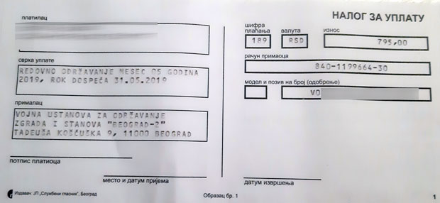 Како нам се пожалила Г. Ф., станарка једног од солитера из поменуте вождовачке улице, износ на уплатници у односу на март, није могао да прође незапажено, будући да је виши за 159 динара.