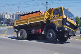 ИРОНИЧНА СЦЕНА У БЕОГРАДУ: Путарском камиону точак упао у огромну рупу
