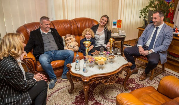 Наша је обавеза, као локалне управе, да се овакве и сличне ствари поштују и уважавају. Његов велики успех је истовремено и наш велики успех, казао је Шћекић, у чију је фотељу мали Виктор засео на неколико минута, радознало загледајући списе на столу међу које је сместио пехаре које је донео са надметања из Турске.