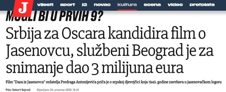 ZAKUKALI ZBOG "DARE IZ JASENOVCA": Hrvatski mediji zapomažu jer Zagreb ne ulaže ništa, dok Srbija podržava domaću kinematografiju