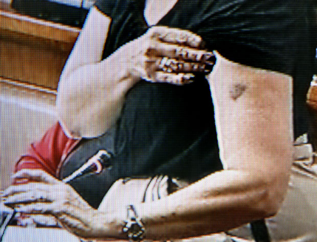 Gojkovićeva, koja je poručila da su Dveri montirale snimak incidenta, najpre je ustala na mestu predsedavajuće, skinula sako i pokazala podliv na levoj nadlaktici, a potom je to učinila i iz poslaničke klupe.