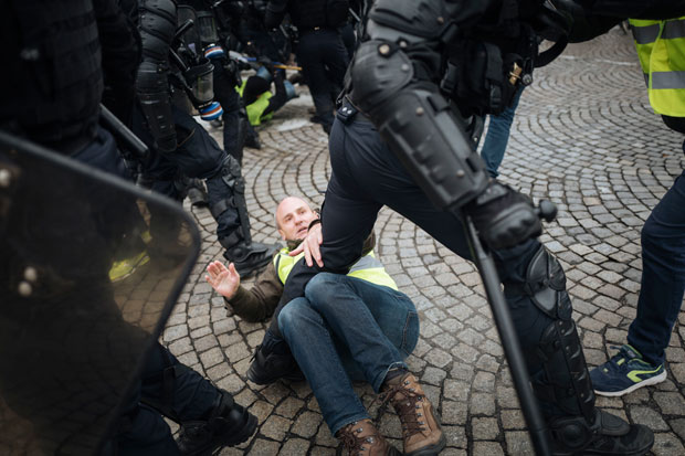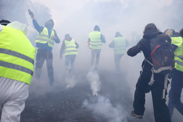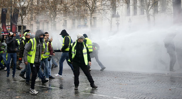 Police unleash water cannon on #GiletsJaunes protest in Paris