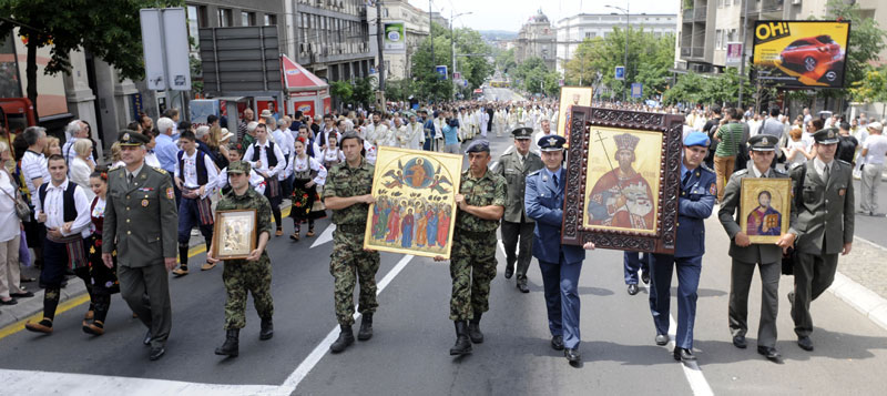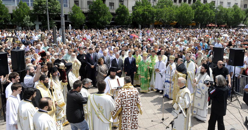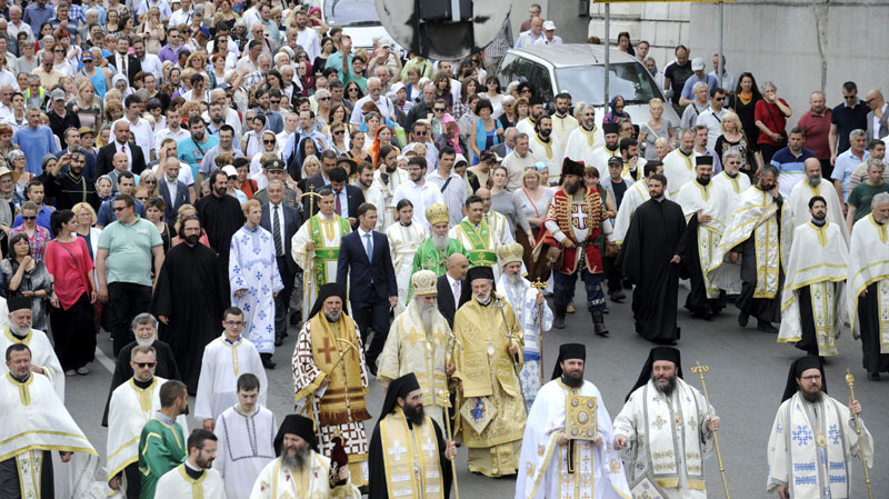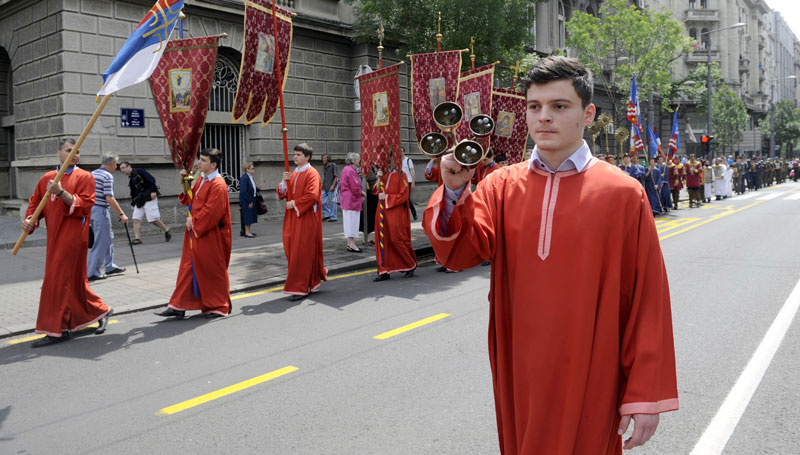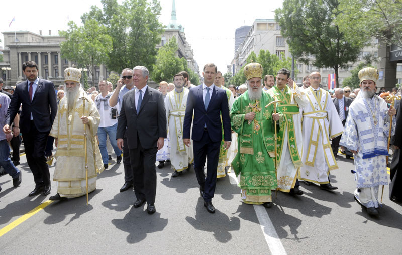 Поводом градске славе Спасовдан, централним београдским улицама одржана је литија коју је предводио патријарх српски Иринеј