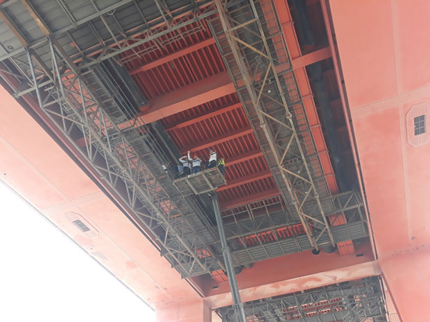 Радове на топловоду на конструкцији Газеле, радници обављају на висини од 15 до 20 метара изнад воде.