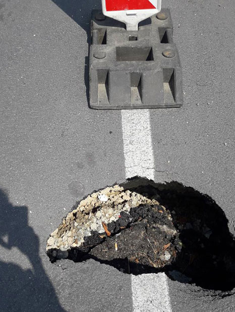 - Слегања је било и раније неколико пута, а екипе су излазиле на терен и поправљале рупу, али се проблем упорно понављао. Испитивање мреже завршено је пре неколико дана, а екипе су утврдиле да подземне воде пролазе у шахт и да се тако "испира" тло, због чега долази до улегнућа саобраћајнице.