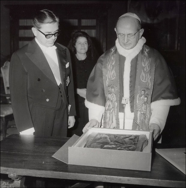 * Папа Павле Шести са Мештровићевим рељефом у дрвету / Фото Музеј Југославије