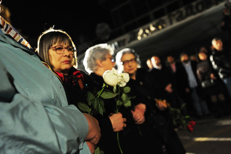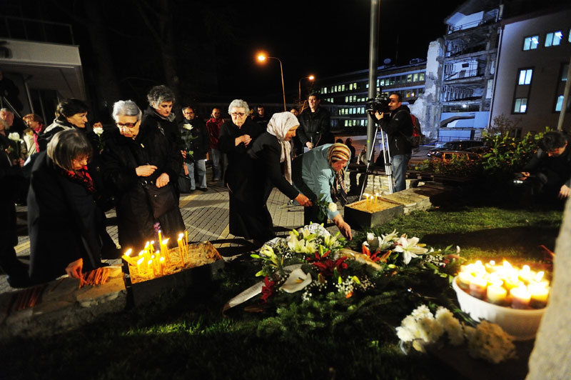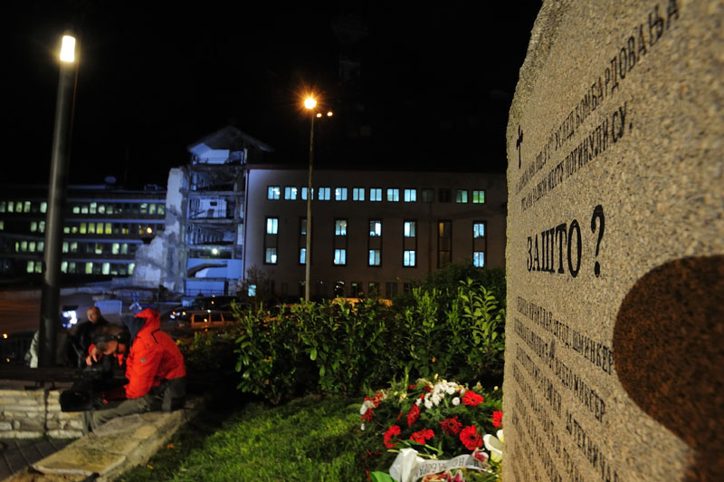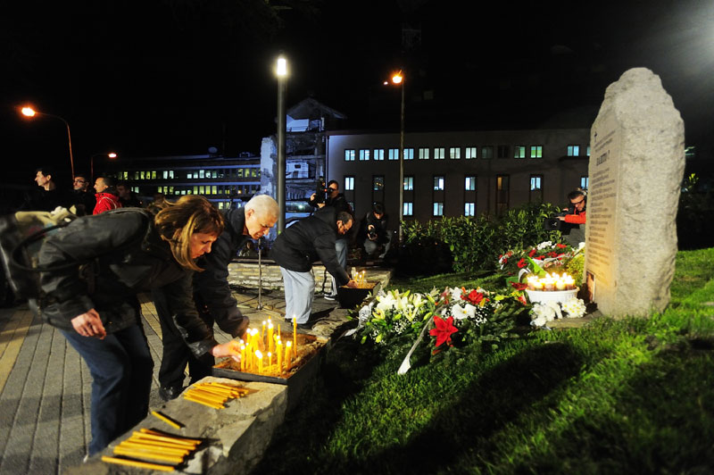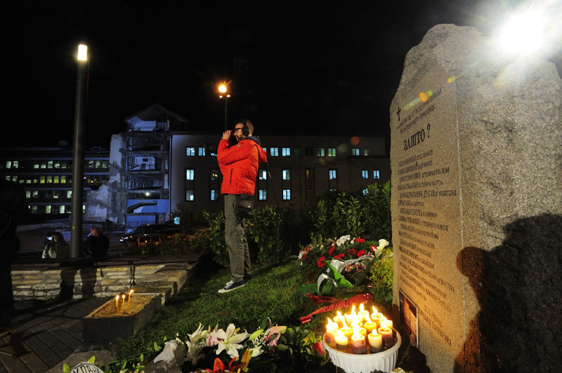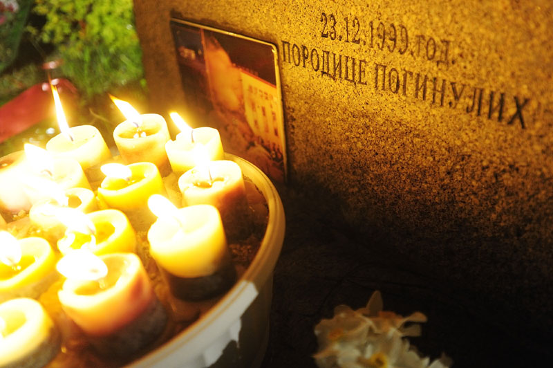 Чланови породица, пријатељи и колеге јутрос у два сата и шест минута положили су венце на спомен-обележје "Зашто?", у знак сећања на 16 радника РТС, страдалих у нападу НАТО снага 23. априла 1999. године