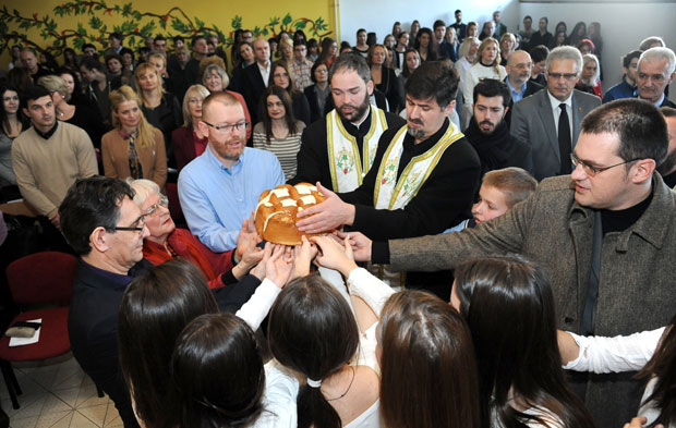 Ђаци и наставници основних и средњих школа у Србији, уз химну и ломљење колача, обележили школску славу. Новосадски ученици славили са вршњацима сa Кoсова и Метохије