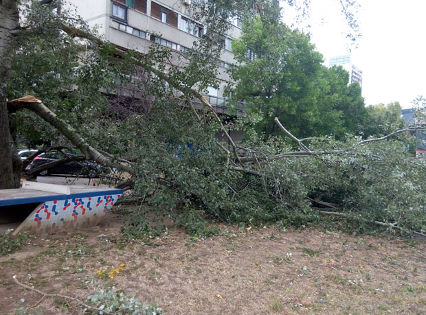 На наплатној рампи Врчин, ветар налик торнаду носио је чак и контејнере, а на Новом Београду је ишчупао стабло из корена.