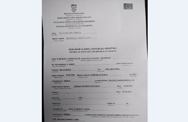 -Имам информације да је јутрос око пола седам заустављен комби са 11 војних особа које су имале војне униформе у возилу. Нисмо имали званичне најаве тих особа и на основу закона о надзору хрватске границе нису испуњени услови за улазак на територијудруге државе. Посету је требало најавити и постоје прописи како се то ради- рекао је Милина.