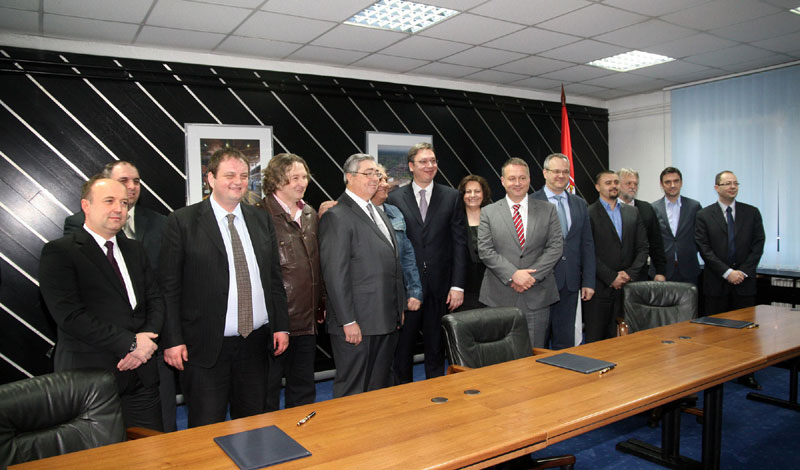 Уговор су потписали министар привреде Владе Србиjе Жељко Сертић, у име Железаре Смедерево Боjан Боjковић и представник "ХПK инжењеринга" Петер Kамараш, а потписивању jе присуствовао премиjер Србиjе Aлександар Вучић.