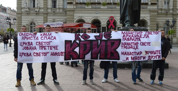 НА Тргу слободе, у центру Новог Сада, јуче је у организацији удружења "Млада српска снага", организован протест против пријема Приштине у Унеско. Неколико десетина младих, код споменика Светозару Милетићу, развило је транспарент на коме је писало "Ко је крив", уз списак српских манастира и цркава које су уништене или оштећене на КиМ. Потпредседник Удружења "Млада српска снага" Стефан Пекић рекао је да млади на овај начин изражавају незадовољство тиме што се уопште гласа о чланству Косова у тој међународној институцији. (Ј. С.)
