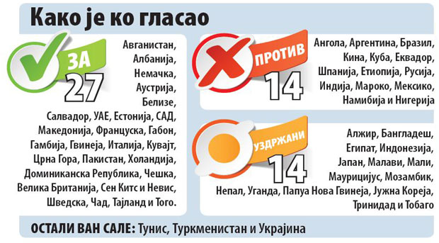 - Ово је врло позитиван резултат гласања у постојећим околностима. Јер, апсолутна већина чланова није гласала "за" - изјавио је за "Новости" одмах после гласања амбасадор Србије при Унеску Дарко Танасковић, наводећи да је проблем систем гласања у ИС, где се уздржани гласови не броје.