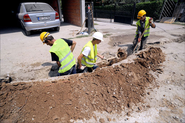 - Свакодневно ископамо по 100 метара рова дубоког један метар - објашњава шеф градилишта Зоран Нитковић. - Врућина нам успорава посао, али ми се трудимо да "изгубљено" време надокнадимо кад прилади. Обично радимо од седам до 17 часова, али сада се због високе темпертуре примењују ванредне мере. Осим чешћег одмарања у хладовини и конзумирања воде, по потреби правимо и дужу паузу када Сунце најјаче пржи. Посао настављамо после 17 часова, кад је мало пријатније за рад.