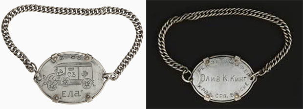 Шоферске ознаке са бројем три које је носила око врата током Великог рата