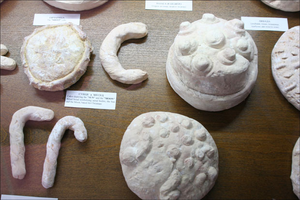 У МУЗЕЈУ је изложено 96 обредних хлебова, и они су најважнији део збирке и разврстани су по групама. Месе се за велике празнике, као што су Божић, Ускрс, славе, рођења, сахране, даће... Хлеб за орача је у облику шаке, за децу - голупчићи, а у онај за виноградаре ставља се грожђе, за славу се меси хлеб у облику Сунца...