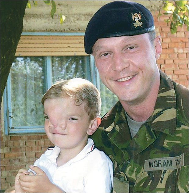 Стефан Савић из Милошеваца крај Лакташа добио прилику за нормалан живот. Наредник Кфора Вејн Инграм пре 13 година одвео дечака на прву од укупно пет операција после којих му се вратио осмех