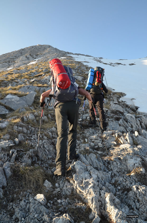 Успон до врха захтева озбиљан напор, нарочито ове године, јер су оркански ветрови недавно ишчупали из корена хектаре шуме на висини од око 1.000 метара и разбацали огромна борова стабла као да су палидрвца. Већи део уморних пешака остаје да се одмори и преспава у црквици Панагији на 1.500 метара надморске висине, која служи и као одмориште с креветима и огњиштем. Ходочашће настављају пре зоре, јер је тад залеђена огромна маса метрима дебелог снега у планинском усеку куда води уобичајена серпентинска стаза. Одлучнији настављају пут одмах верући се готово вертикално по чистим стенама и прелазећи у два наврата преко снежних препрека, молећи се да не покрену лавину. Кад се погледа унатраг, у застрашујући непрегледни понор, постаје јасна изрека да на пучини, планини и војничком рову нема атеиста. Овде сви бар једном помисле: "Помози Боже". Тим путем су кренули репортер "Новости" и двојица грчких ходочасника, који су такође одлучили да присуствују величанственом сутону и преноће на врху Атоса, упркос прогнозираној температури од минус 10 степени и ветру од 40 километара на сат.