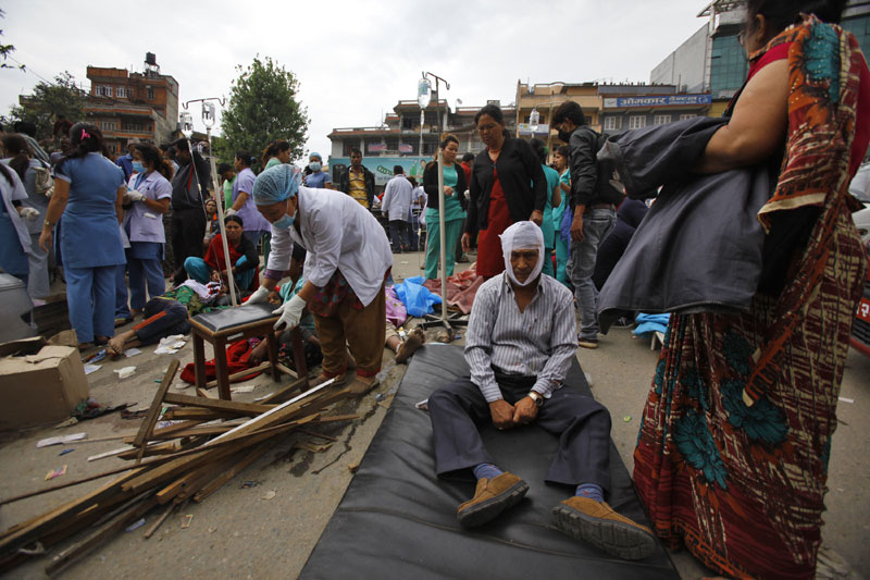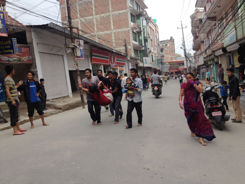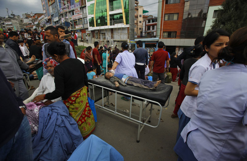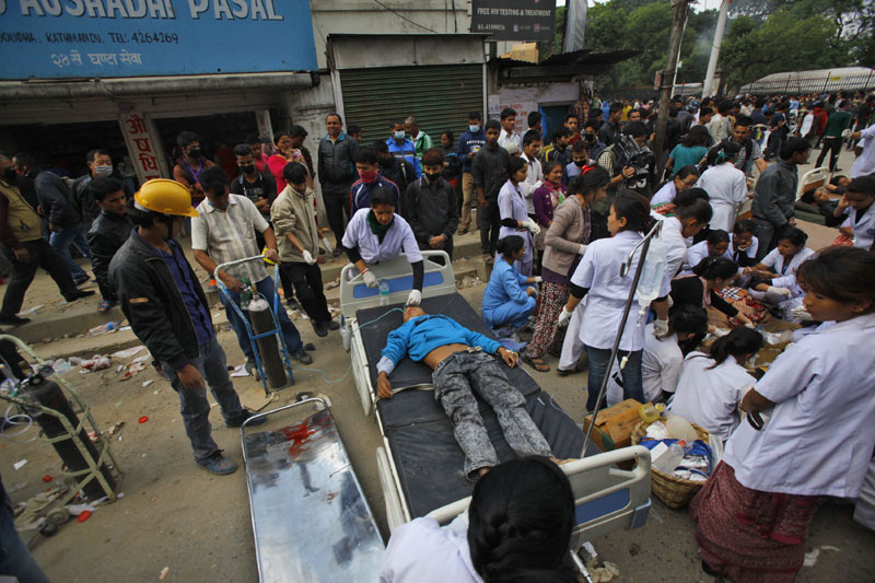 Снажан земљотрес је изазвао рушење многих зграда у Катмандуу, велики број људи је повређен, а над градом се надвио велики облак прашине, преносе агенције наводе сведока за локалну телевизију.