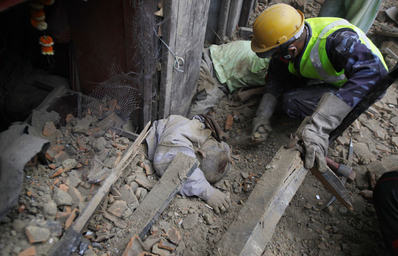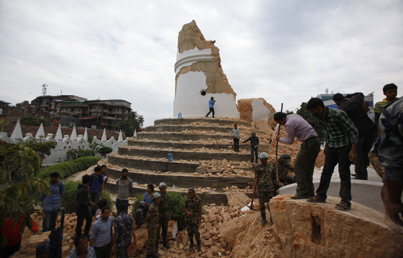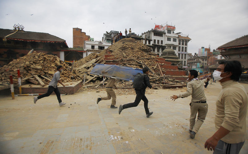 Најмање 50 људи заробљено је у торњу од девет спратова, из 19. века у Катмандуу, који се срушио, а према тврдњама очевидаца ту има жртава.