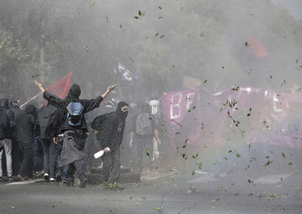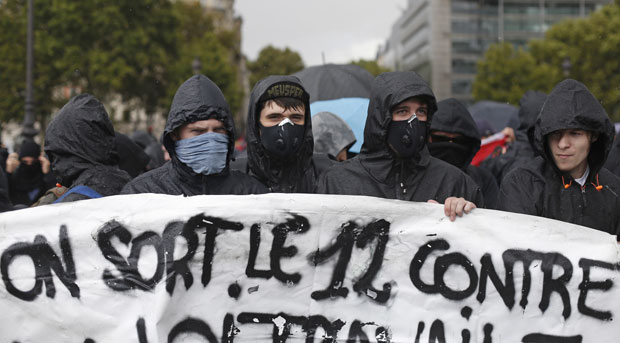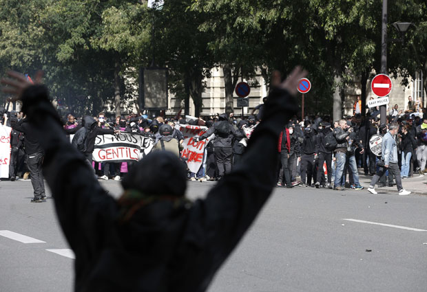 ПОЛИЦИЈА у Паризу употребила је у уторак по подне сузавац и водене топове пошто су их демонстранти, највише млади са капуљачама, засули каменицама, док се истовремено широм Француске протестује против реформе Закона о раду које је планирао да спроведе председник Емануел Макрон. У сукобу са полицајцима демонстранти су користили и Молотовљеве коктеле. Бројни аутомобили су разбијени.
