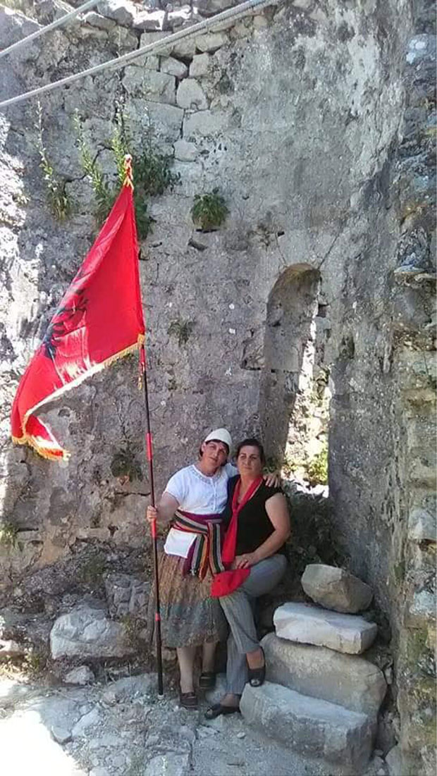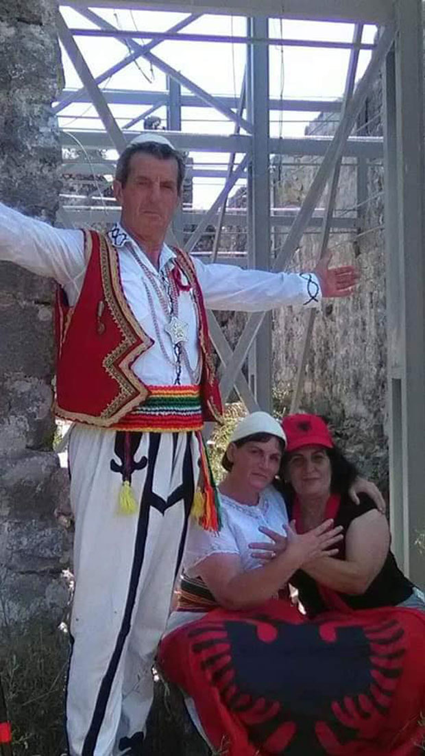 Сабрала се група Албанаца одевених у национално рухо, са албанским заставама, капама и рукама раширеним у симбол "велике Албаније"