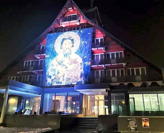 Милов oдборник у Пљевљима на свој хотел окачио БИЛБОРД са иконом Светог Саве (ФОТО)
