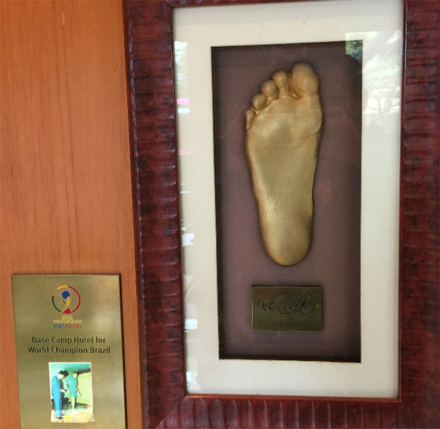 ФУДБАЛЕРИ Србије су данас одржали тренинг у Бусану у фудбалском кампу који је био активан и током Мундијала 2002. године. Занимљиво је да је тада ово била база репрезентације Бразила, која је тада освојила пету титулу светског првака. Као један од украса у спортском центру у Бусану стоји окачен отисак десног стопала чувеног Роналда, који је на овом турнеру постигао осам голова.