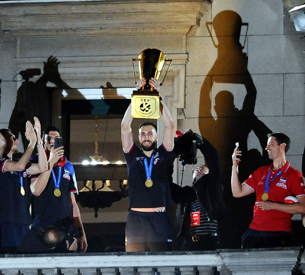 После освајања златне медаље на Европском првенству одбојкаши су стигли у Београд где су дочекани на чувеном Балкону