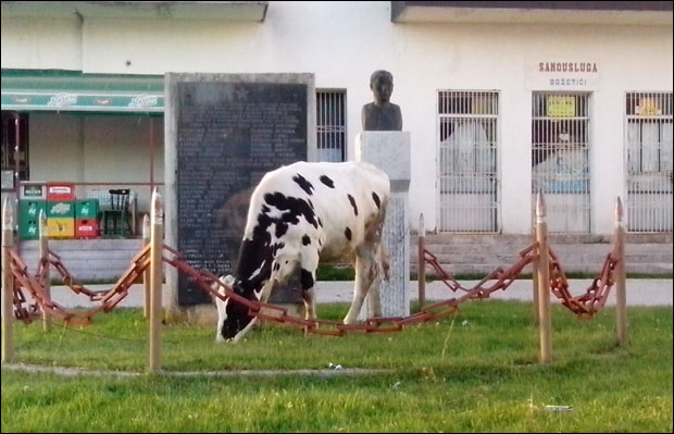 - Крава је прешла ниску ограду око споменика партизанским борцима на Боровитој главици у Божетићима, у центру подјаворских села нововарошке општине. Мирно је ту, испред школе, задружног дома и продавнице, пасла росну траву. А није боља ни брига о белезима у граду: тамо се не коси трава око спомен-гробнице, недалеко од цркве, иако је то јавна површина, а већ две године је споменик војводи Петру Бојовићу на градском тргу - без цвећа?!