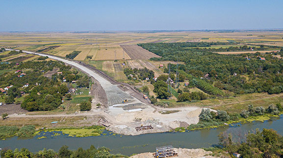 Насипањем песка као подлоге трасирана је комплетна деоница обилазнице око Зрењанина. У току је уградња потпорних зидова и армирање носећег стуба на левој обали реке