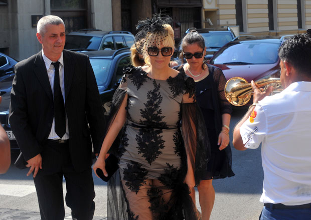 Све време је држала за руку Уга, док је у другој носила букет цвећа, стрпљиво и са осмехом на лицу позирајући фото-репортерима. Пре младенаца, у Саборну цркву су стигли Пикси и његова супруга Снежана, што је посебно обрадовало трубаче који су одмах засвирали познате хитове међу којима и “Ђурђевдан”.