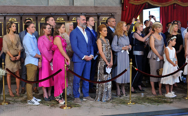 ВЕћ око 14 сати, гости из иностранства али и домаћи сватови из света музике, бизниса, културе и спорта, пристизали су у хотел “Сквер најн”. Венчању Пиксијеве ћерке били су Зоран Кики Лесендрић, Горан Карић са супругом Иваном, Јелена Триван, Снежана Дакић, Софија Милошевић, Бранислав Трифуновић...