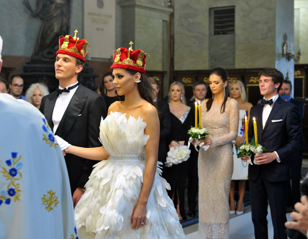 Церемонију црквеног венчања обавила су два свештеника, један на српском а други на енглеском језику, јер младожења не говори наш језик. Младин отац Драган Стојковић није могао да сакрије емоције после венчања, а, за, “Новости”, је рекао: