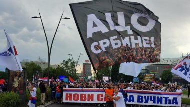 Na čelu kolone se nalazi transparent "Novi Sad za Vučića", kao i zastava "Aco Srbine". Foto: Novosti