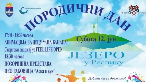 PORODIČNI dan na jezeru u Resniku, biće organizovan sutra. Najpre će najmlađi imati priliku da se zabave od 17 do 18.30 sati, a onda sledi projekcija filma "Duša" pod otvorenim nebom, od 21 čas.