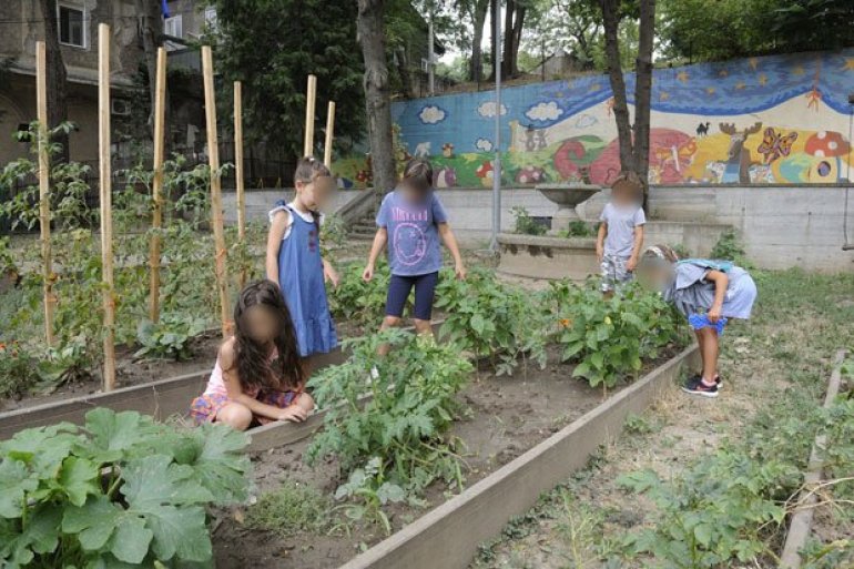 Iako žive u centru grada, mališani već dobro znaju da razlikuju vrste povrća. U malim lejama, sade, polivaju, pleve, beru plodove.