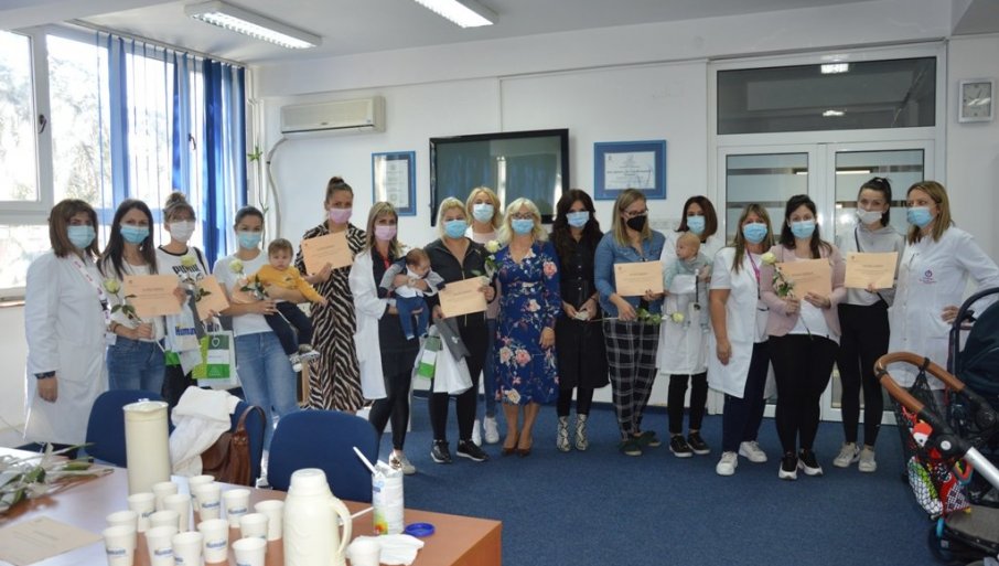 U nešto drugačijim uslovima, zbog zaštite od pandemije, a sa željom da bar na trenutak zahvali mladim mamama koje svoju decu odgajaju uz majčino mleko, patronažna služba Doma zdravlja darovale su mame ružama i poklon paketićima za dojilje. Opština Čukarica jedna je od Opština koja beleži najveći broj novorođenih, te je mame pozdravila i članica Veća Stana Lukić.
