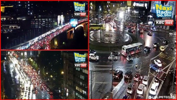 U BEOGRADU je već tradicionalno zbog kiše potpuni saobraćajni kolaps. Veliek gužve su na mostovima u glavnom gradu, kao i na čvorištima.