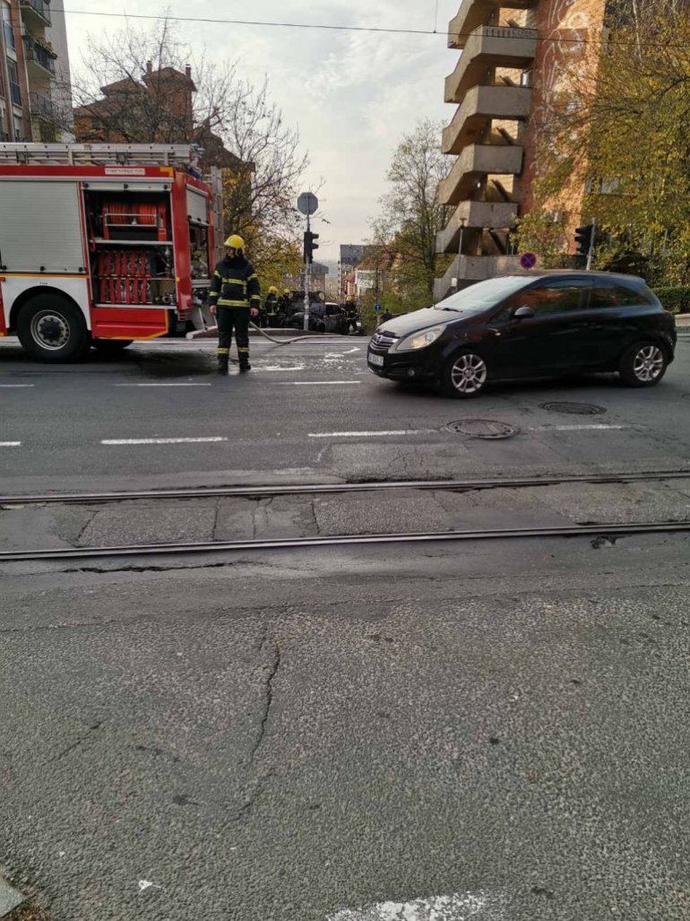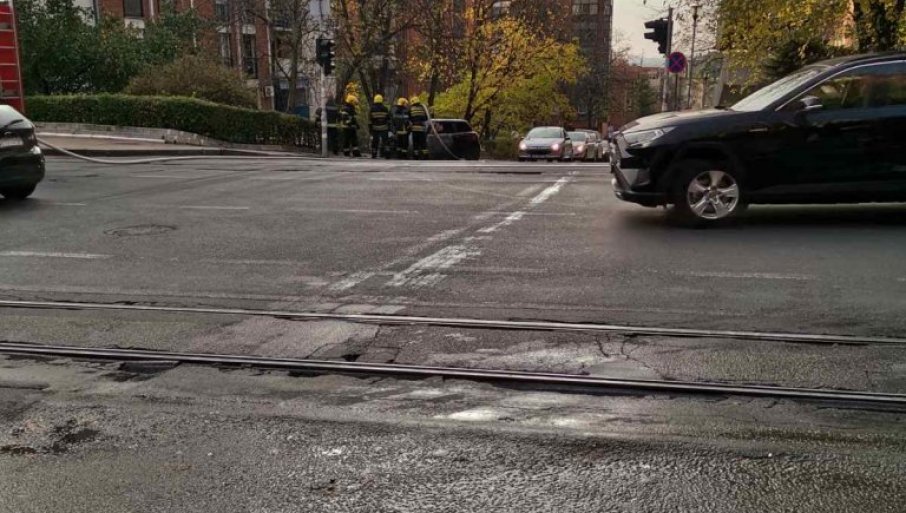 Automobil se zapalio na uglu Požeške i Valjevske ulice.
