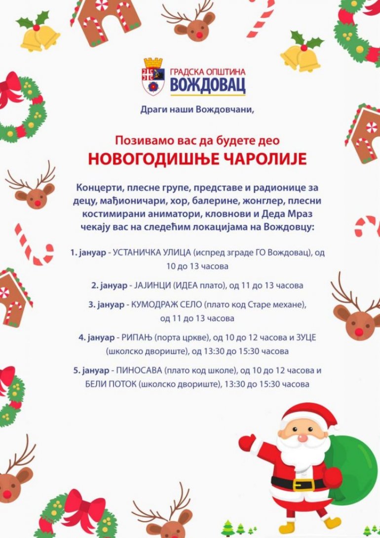 NOVOGODIŠNJE ČAROLIJE ZA SVE VOŽDOVČANE: Od 1. do 5. januara 2022. godine.