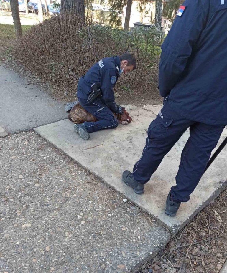 Sve je počelo kada su policajac Boban Matanović (35) i njegov kolega iz Policijske uprave Zvezdara preko radio-stanice dobili dojavu o napadu staforda na slabovidog čoveka i njegovog psa.