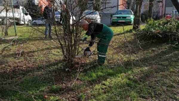Poslovi na kojima radnici JKP "Zelenilo Beograd" vredno rade su karakteristični za ovaj period godine. Orezuju se i saniraju prelomljene grane od snegoloma, u toku je i seča suvih grana, orezivanje stabala, prolećno grabuljanje travnjaka, utovar i odvoz sakupljenog lišća i otpadaka.