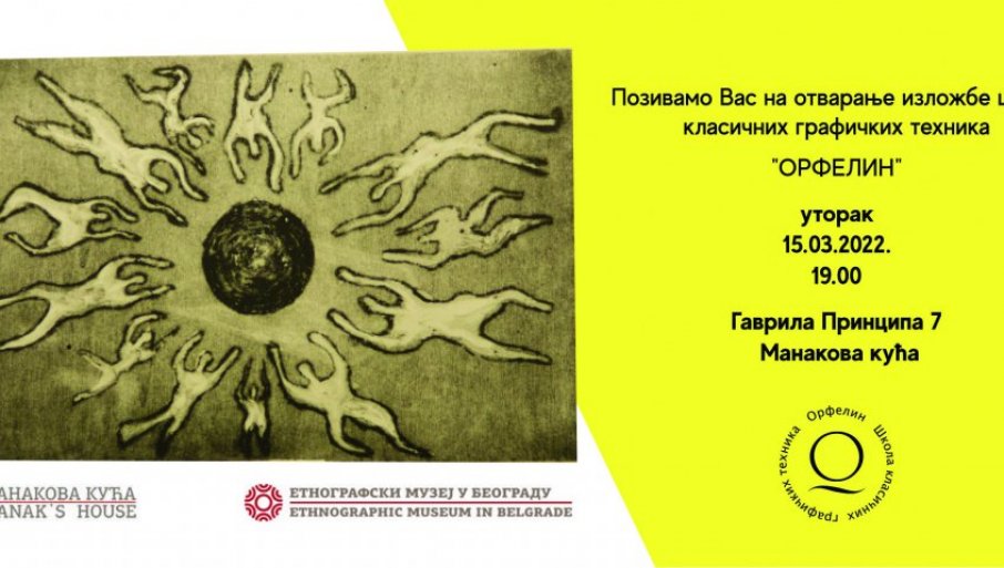 IZLOŽBA radova polaznika škole klasičnih grafičkih tehnika "Orfelin", koja se 2008. godine priključila programu Etnografskog muzeja, biće otvorena sutra od 19 časova u Manakovoj kući u Ulici Gavrila Principa.