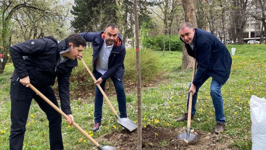 NOVE SADNICE U LJUTICE BOGDANA: U okviru akcije "Za zeleniji Savski venac" opštinski čelnici sadili drveće