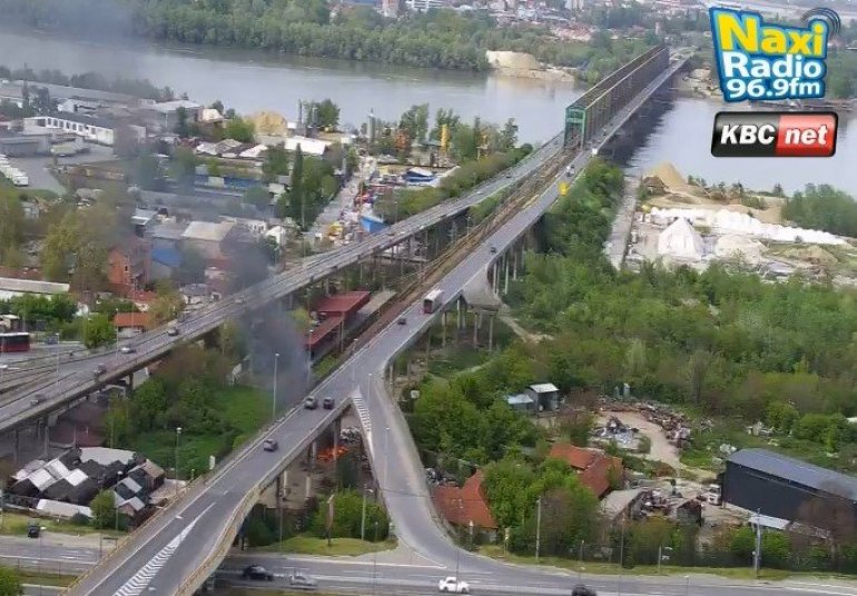 NA SAOBRAĆAJNIM kamerama koje uživo prate situaciju na glavnim čvorištima u Beogradu vidi se plamen koji bukti ispod jedne od pristupnih traka na Pančevačkom mostu.