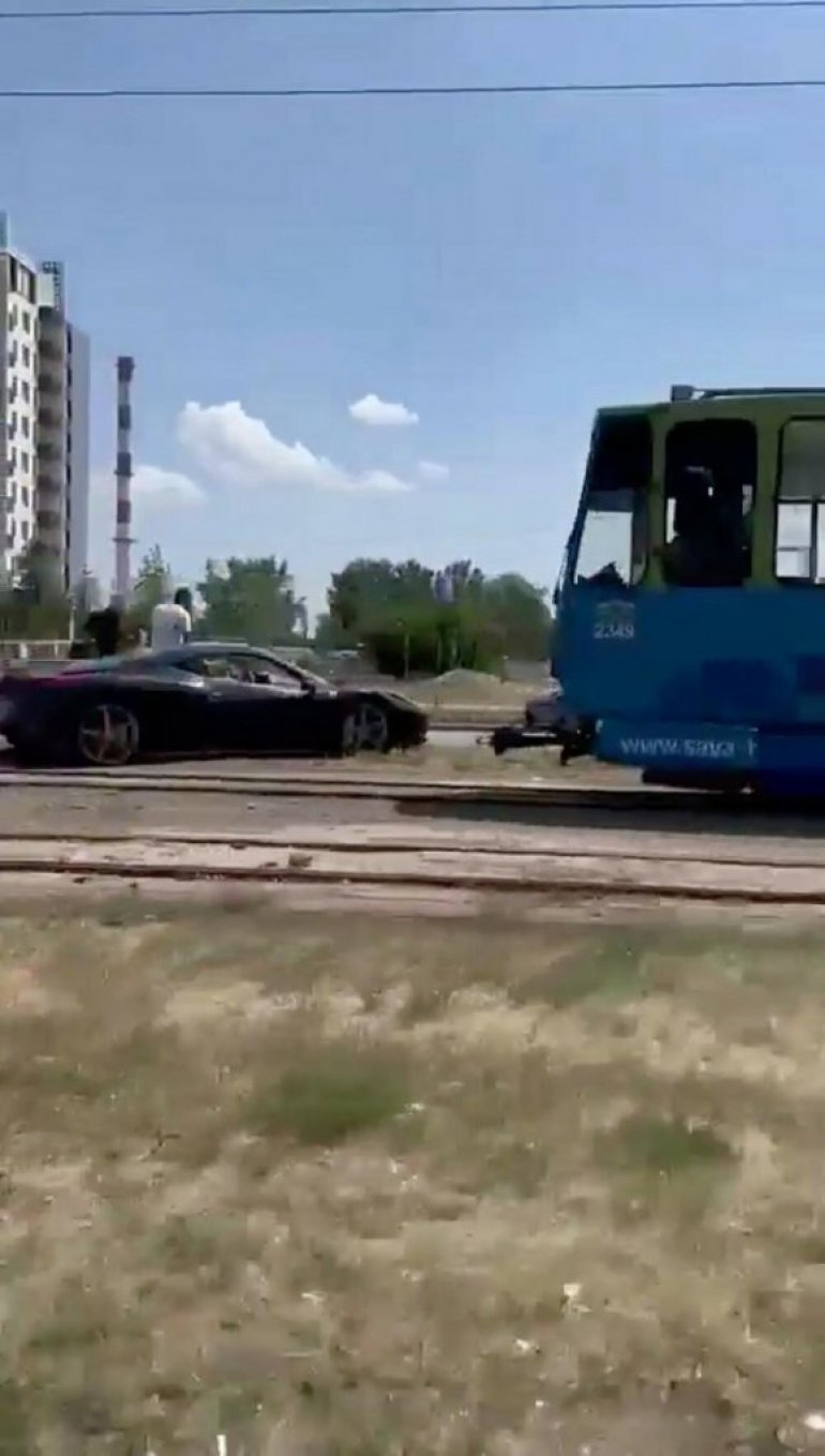 Snimak Ferarija osvanuo je na Instagramu, a kako se može videti na njemu auto stoji ispred tramvaja, koji su zbog toga privremeno prestali da saobraćaju.