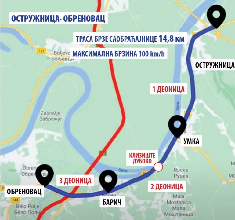 OD petlje "Ostružnica" na Obilaznici oko Beograda do petlje "Obrenovac" u narednom periodu trebalo bi konačno da počne izgradnja brze saobraćajnice dužine 14,8 kilometara, čime bi se saniralo i klizište u Dubokom, najveće u Evropi. Prostorni plan ovog područja posebne namene biće na ranom javnom uvidu do 25. jula, a cela trasa podeljena je u tri deonice.
