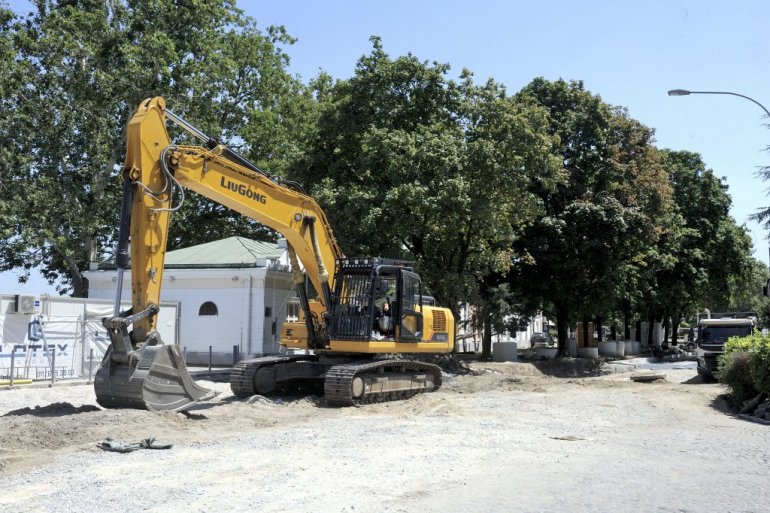 Reporteri "Novosti" posetili su ovo gradilište u centru Zemuna i zatekli radnike koji su zbog previsokih temperatura malo predahnuli. Ipak, nekoliko bagera bilo je angažovano na čišćenju prostora kod restorana "Bela Napoli" i Zmaj Jovine ulice, gde će ubrzo nići kružni tok. Tu je i par kamiona odnosilo šut, pošto se uklanjao stari i dotrajali asfalt i betonska podloga.